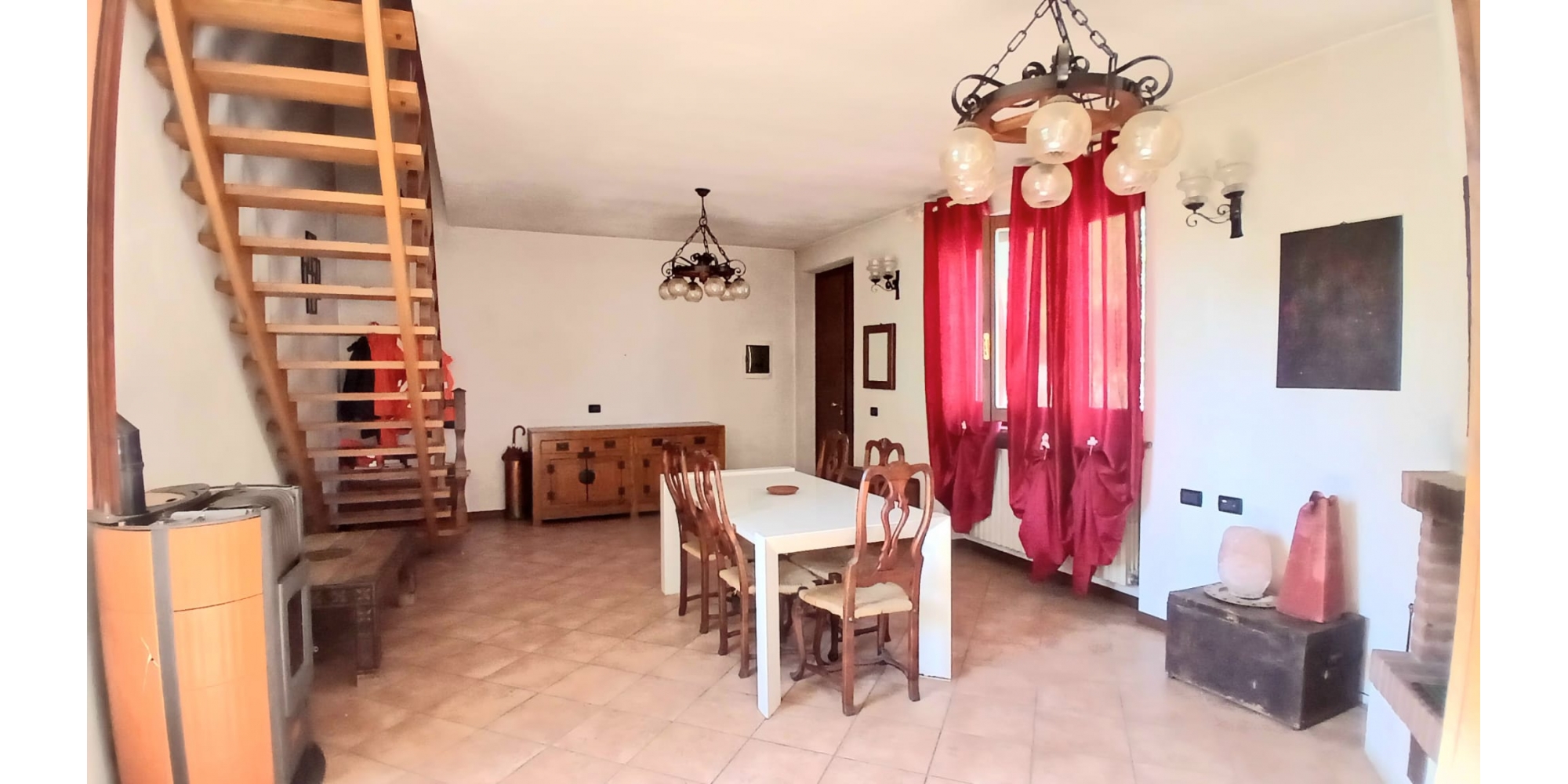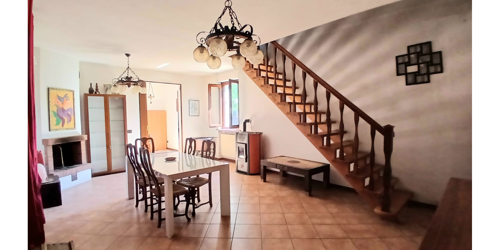 - PT: ingresso, soggiorno con camino, cucina abitabile, lavanderia, servizio e balcone;