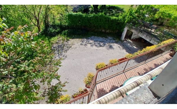 Sul retro della casa, cortile comune con sovrastante locale uso tavernetta e altro locale uso box.