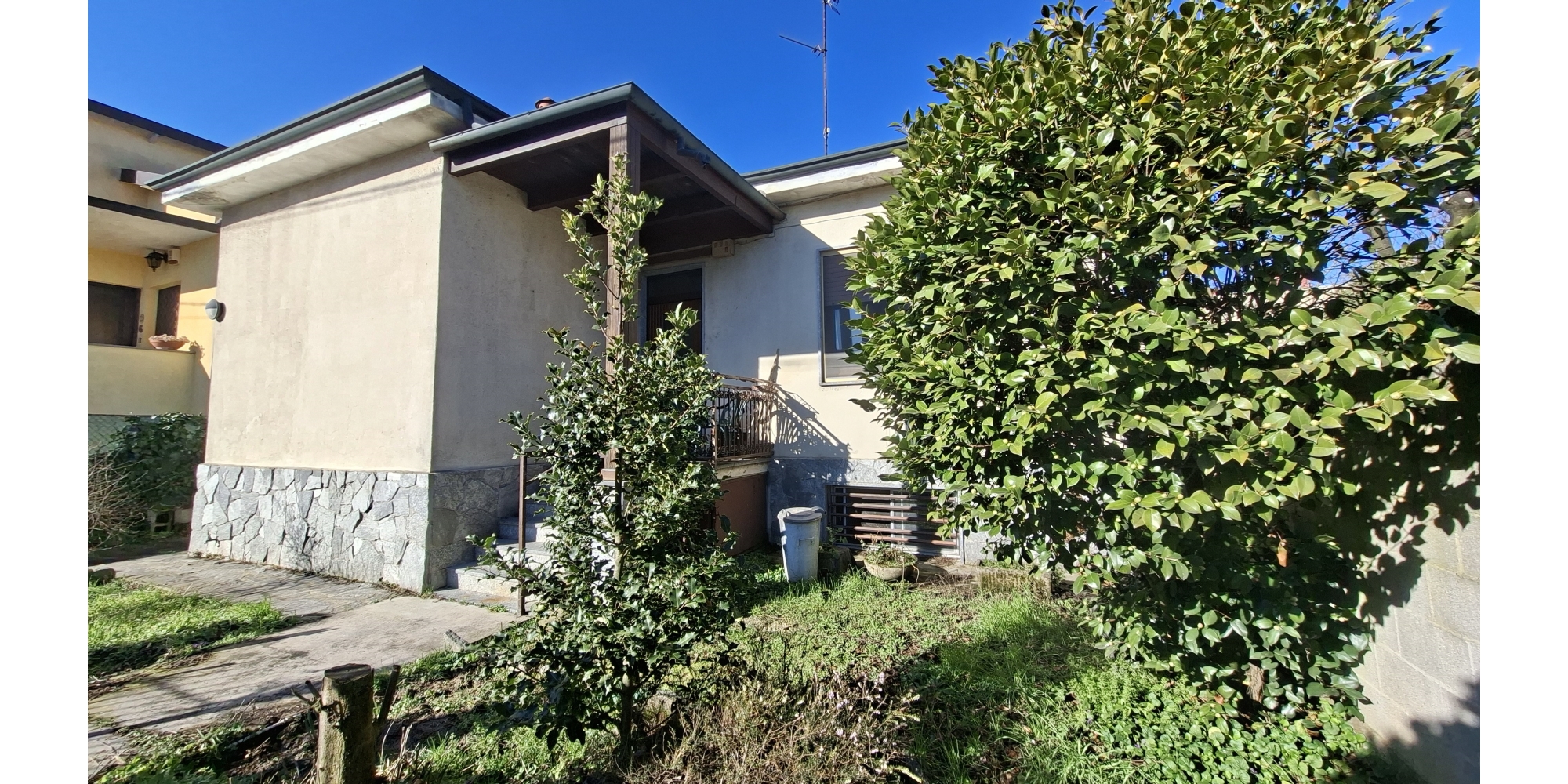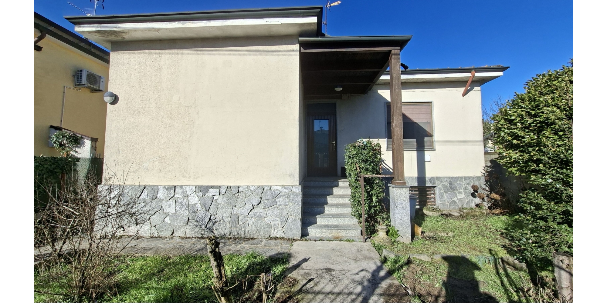 Garlasco - Ottima villetta libera sui quattro lati disposta su unico piano con cantina/taverna al piano seminterrato. Piano rialzato composto da ingresso, soggiorno, sala pranzo, cucinotto, bagno, due camere. Cortile sui quattro lati con annesso box e portico. €. 150.000